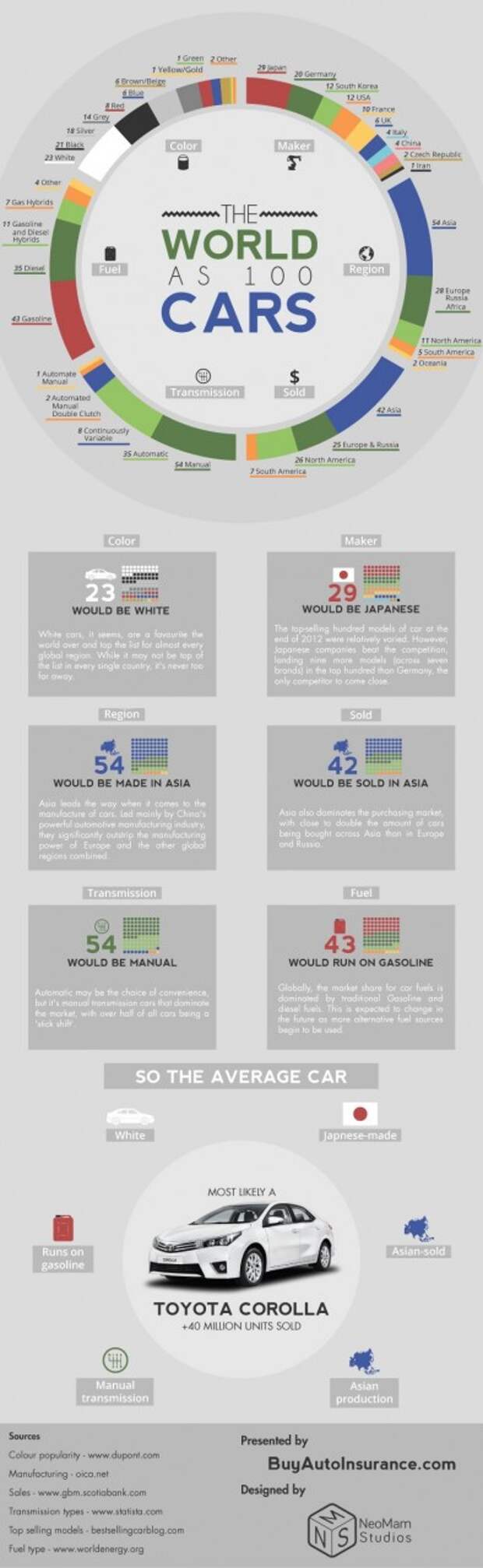Основываясь на продажах автомобилей по всему миру, можно сделать вывод, что если бы в мире было продано всего 100 автомобилей, то